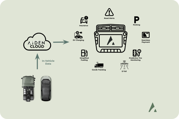 AiDEN's platform goes beyond traditional telematics. We don't just pipe data — we orchestrate intelligent experiences that anticipate driver needs, automate workflows, and unify fragmented services. Running natively on Android Automotive OS, services appear contextually, powered by real-time vehicle data — no phone required.